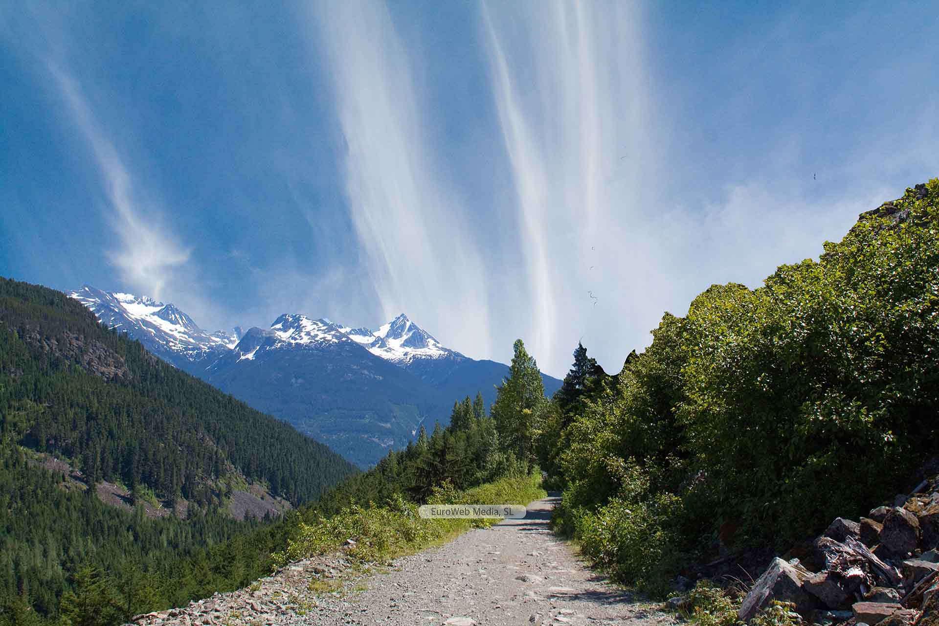 El camino atraviesa horizontalmente la canal y penetra en la depresión del «jou» Lluengu.